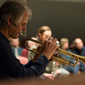 Anders die intuitive Musik, mit der sich Markus Stockhausen seit seiner Jugend beschäftigt. Sein Vater Karlheinz Stock-hausen prägte die Idee in den 1960er Jahren. Der Sohn entwickelt das Konzept auf seine Weise weiter, nicht nur selbst musizierend, sondern auch in Seminaren. „Ich ermutige die Studierenden, sich auf den Freiraum der Improvisation einzulassen. Das ist auch ein soziales Geschehen, das Rücksicht erfordert und die Fähigkeit, andere in ihren Ideen zu unterstützen“, erklärt der Musiker.